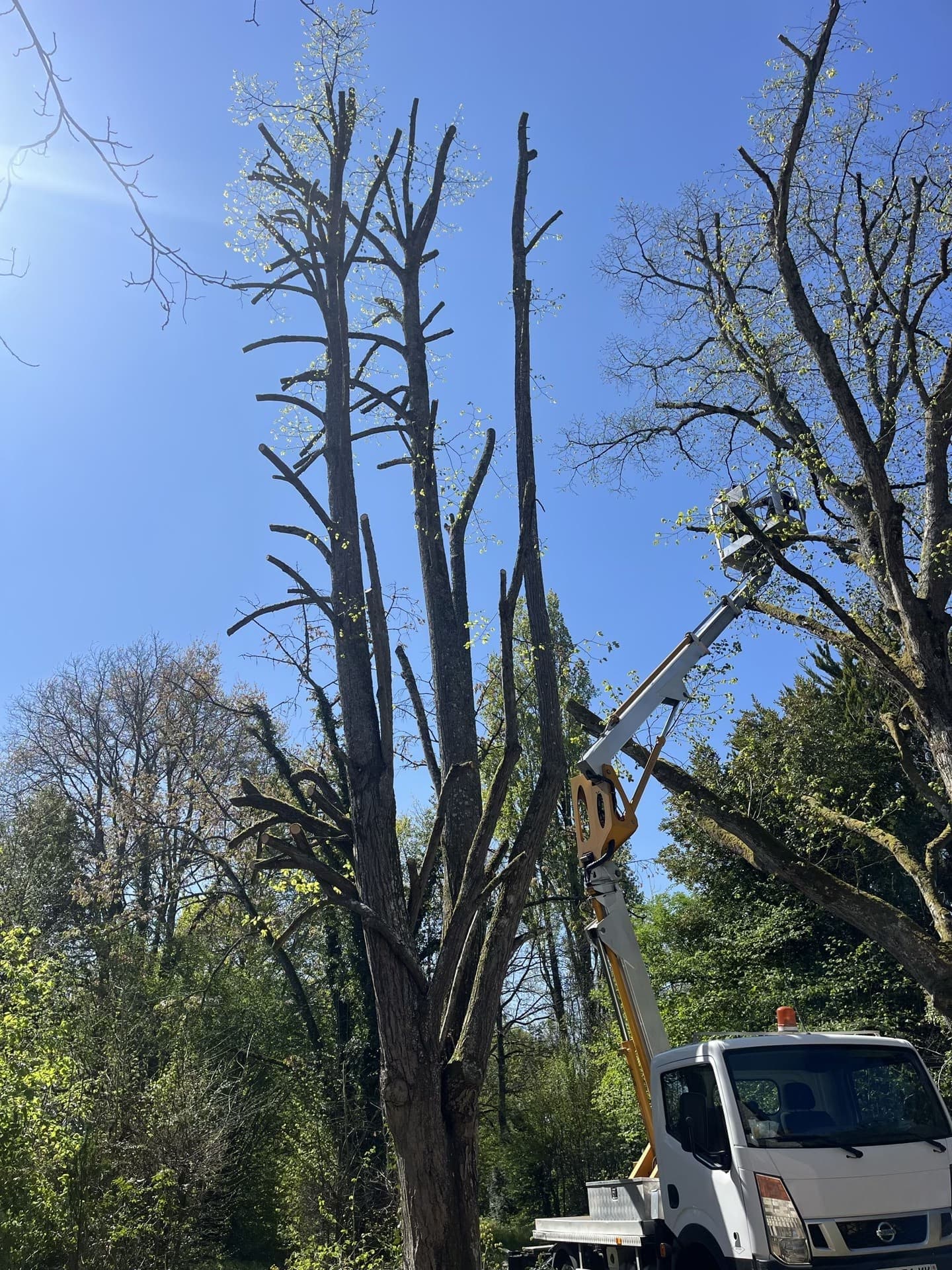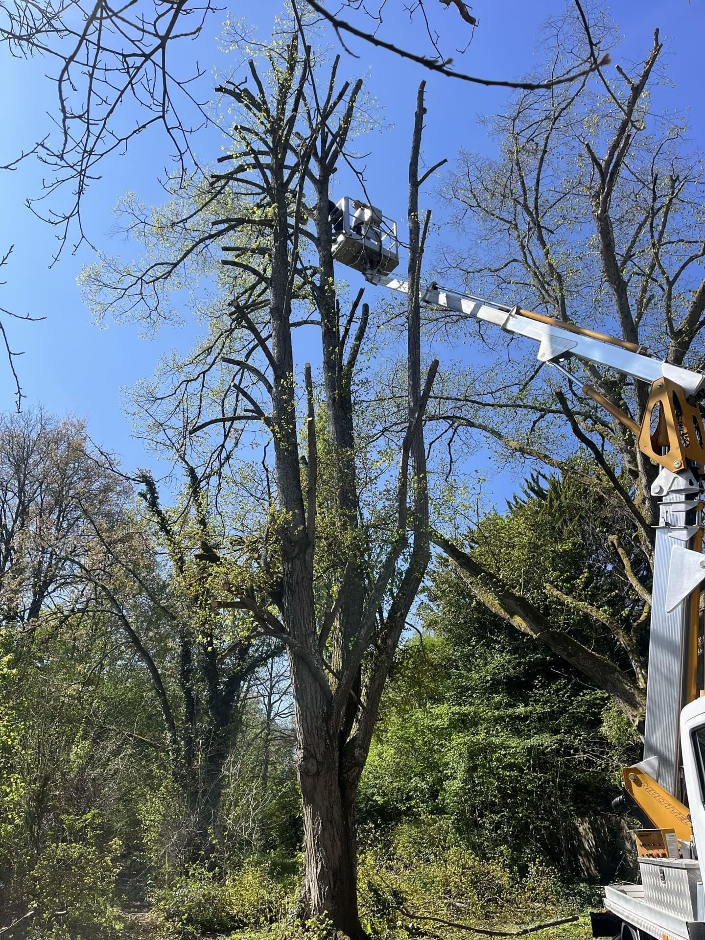 Charly Ferret Bois-le-Roi (77590) Intervention effectuée en camion nacelle pour procéder à l'élagage de cet arbre de grande hauteur.