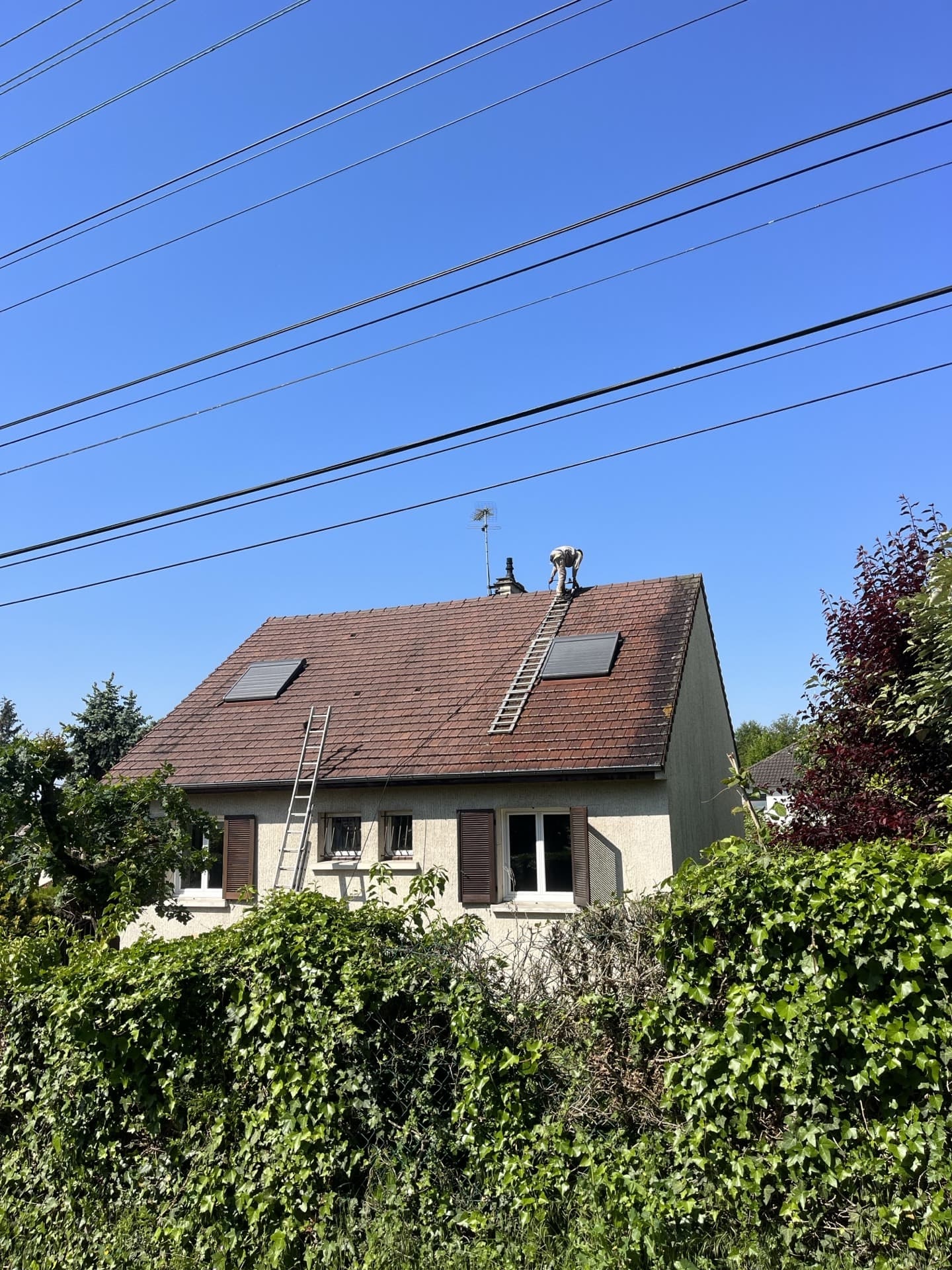 Nous sommes intervenus sur la toiture de cette maison afin de procéder à son nettoyage avec un antifongique hydrofuge.